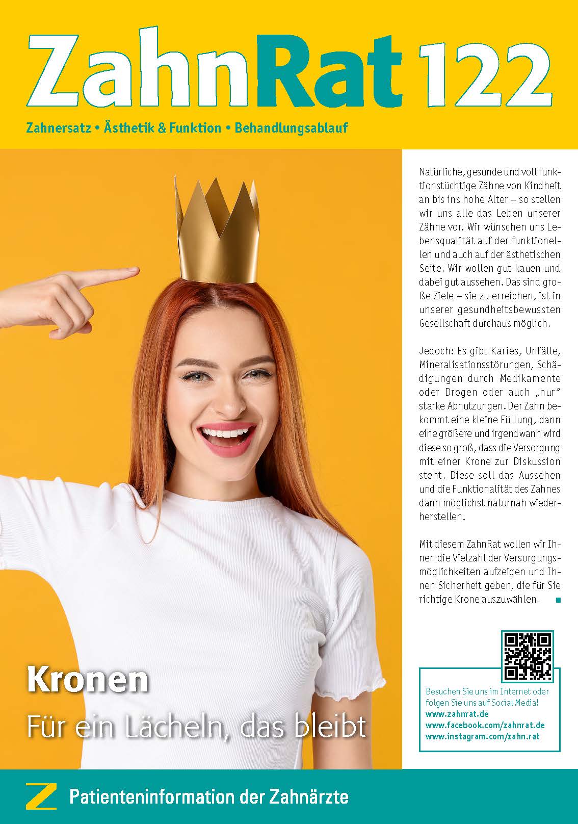 Der ZahnRat ist die Patienteninformation der Landeszahnärztekammer Thüringen. Die Zeitschrift ist in allen Thüringer Zahnarztpraxen kostenlos erhältlich. Sie informiert verständlich über viele Themen der Zahn- und Mundgesundheit sowie über zahnmedizinische Behandlungen.